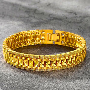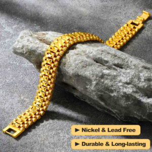 The Luxury Gold Geometric Men’s Bracelet is a bold expression of luxury minimalist jewelry, designed for modern men who live with confidence and style. Crafted with a premium gold-plated finish, its intricate geometric pattern brings a sharp, fashion-forward edge to any look. Durable and resistant to fading, this bracelet is built for daily wear while maintaining its high-shine luxury appeal. Whether styled with streetwear, nightlife fits, or formal outfits, it’s the perfect accessory for men who want to stand out. A must-have piece for trendsetters, influencers, and those who appreciate luxury men’s jewelry with a modern twist.